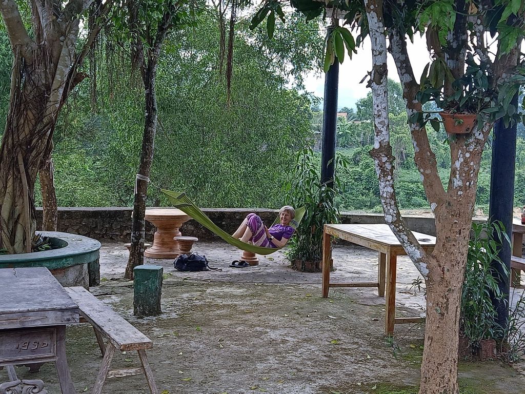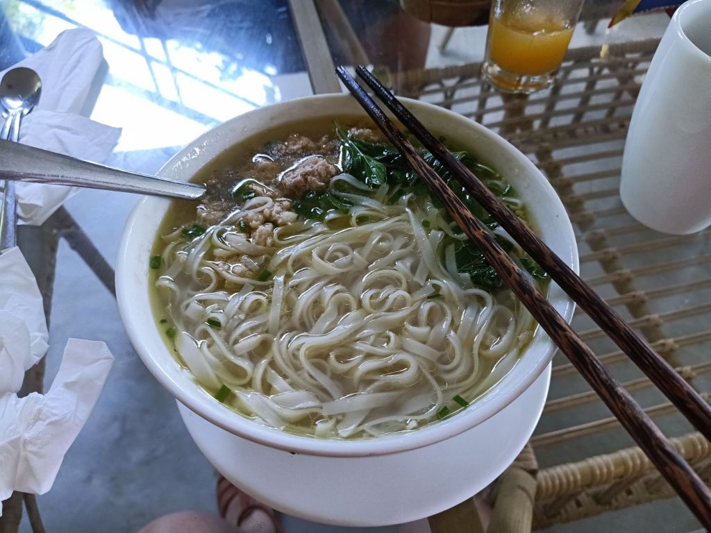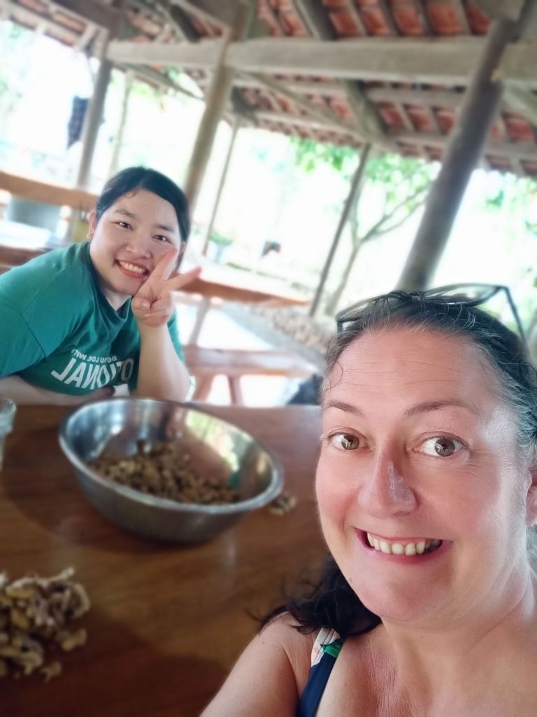 After only a couple of hours sleep, I was awake before 6am on Sunday 19th May. Captain Caveman offered no apology for wearing his grumpy trousers last night, only the reason of being in pain with his shoulder which I made worse by touching him. I was not in the mood to continue arguing and left to get to Phong Nha Vegan. I’d been asked to help with the local charity event which Hoan, the owner, had organised with donations to the Love Foundation. They actually had asked me to get there earlier but I thought a 6.30am start was early enough for me. When I arrived, there were lots of helpers and I don’t think they really needed me, but perhaps having a white face there is lucky or something. Lots of mushroom congee, like a porridge, was dished out or sent by delivery to anyone in Phong Nha who wanted free soup for breakfast. This included me and Laos Quang who popped in to say hello to me. He ended up having a huge bowl of the steamy hot soup and they made him take 3 lots home. I loved it and could easily have had another bowl. A total of 200 bowls had been given out and there was still a little bit left.