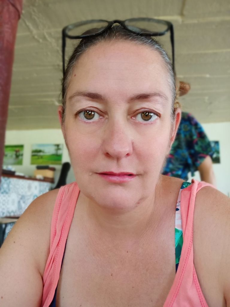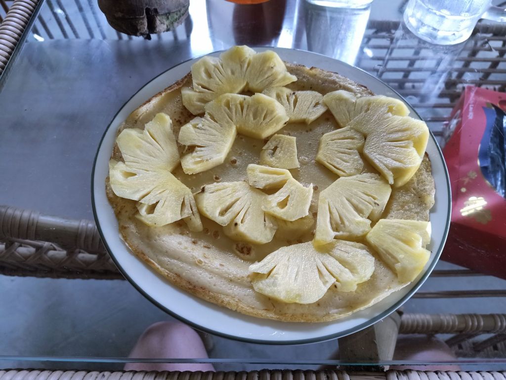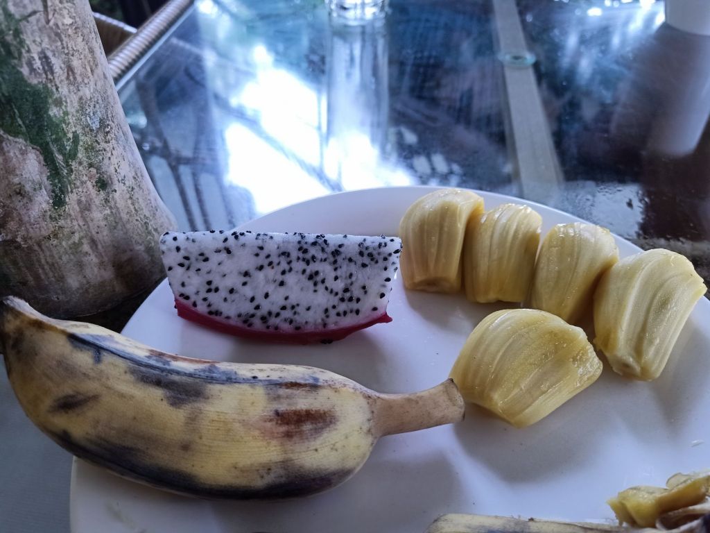 I was back at the Vegan by 11.30am and Hoan was grateful for my help. She made me a Bun Tron for early lunch, which is one of my favourites, then we practiced some English and my Vietnamese with the staff. I was still quite tired and the heat was getting to me as Chung arrived with jack fruit. We shared it, drank tea and I noticed the man walking by. There’s a skinny Vietnamese man who looks homeless and unwashed, he walks past a few times a day and collects cans and plastic bottles. He’s clearly mentally challenged and doesn’t have a full set of teeth. I mentioned to Hoan that she should offer him some soup, even though we were finished with that charity activity. As he sat down and took his wellington boots off to reveal terrible socks with massive holes in, I went to get a photo of Hoan and the man. It then turned in to a bit of a farce as I became the person in the photos and he wanted to chat with me in Vietnamese. He was very grateful as he slurped it down super fast, he was clearly very needy. I left to wash my hands and when I returned he’d taken off with the bowl and the spoon! One of the girls ran after him and took it back, the poor man!