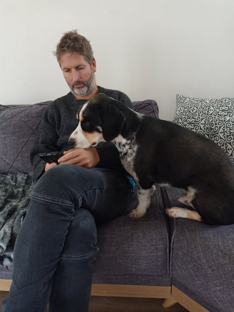At about 4.30pm Edna persuaded me to do the dog walk to the Waterfall pub and we all forgot that Skippy doesn’t go there on a Friday. I just had the 1 red wine, while the dogs got a couple of sausages from Mehmet and made friends with everyone in the bar. Edna got over her Skippy disappointment by trying to get in with a bloke playing darts.