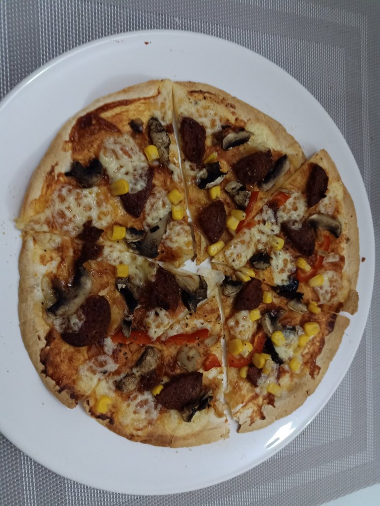 Back home, we all got fed but I didn’t wolf my dinner down nearly as fast as Norman. I made a Slimming World friendly pizza from a wrap, which was really nice, and finished off the chickpea biscuits.